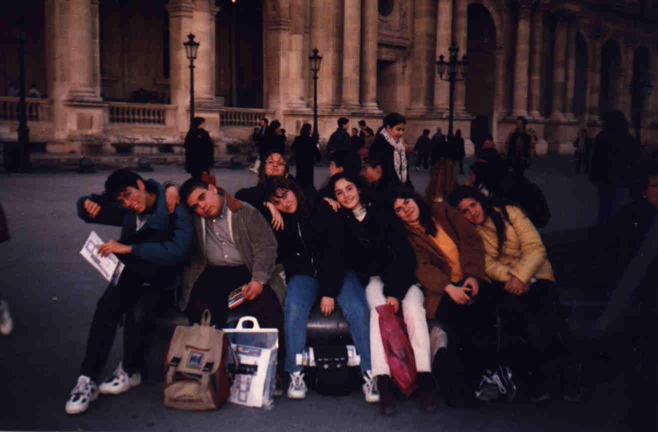 después de la visita al Louvre de París. De izquierda a derecha somos: Oliver, Jordi Parra (Benji), Mari Tere, Vanessa, Pili y Maribel. |