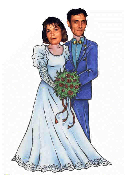 | Mis padres, en su boda (que no...). | Éste es mi hermano grande, Carlos, en una foto cómica. | Y éste es el pequeñajo, el Dani. ¡Cosa mala! Aquí sale favorecido. |